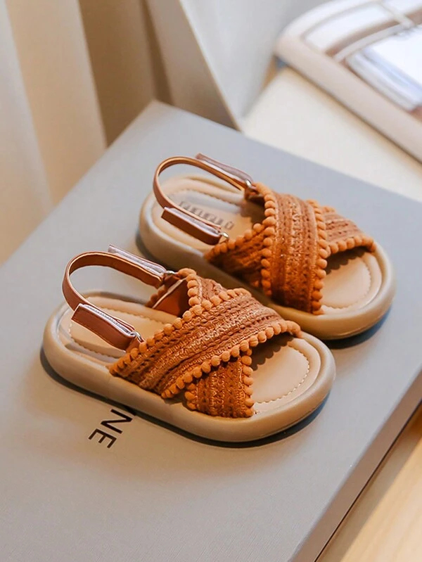 Kids' Flat Comfortable Sandals With Magic Tape For Girls, Lightweight