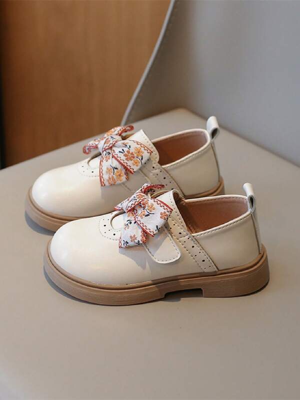 Kids' Floral Beaded Bowknot Detail Beige Flat Shoes
