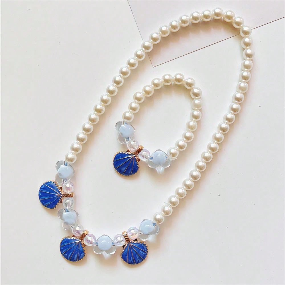 Kids' Pearl Necklace And Bracelet Set, Shell Necklace For Girls, Imitation Pearl Jewelry For Dance Performance, Gift