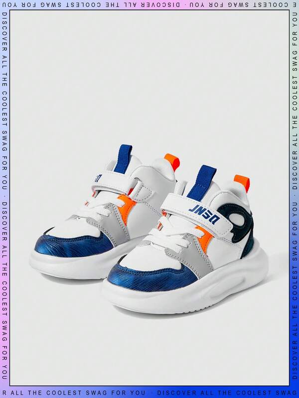 JNSQ Kids Hook-and-loop Fastener Lace Up Design Letter Graphic Chunky Shoes For Spring