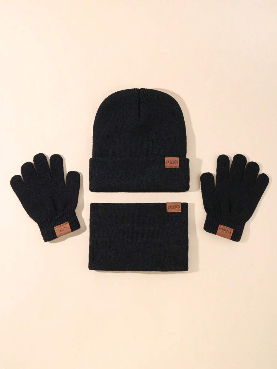 Kids Unisex Winter Car Logo Knit Beanie, Knit Gloves And Scarf Set, Casual Classic Warm (1 Knit Hat + 1 Knit Glove + 1 Knit Scarf)