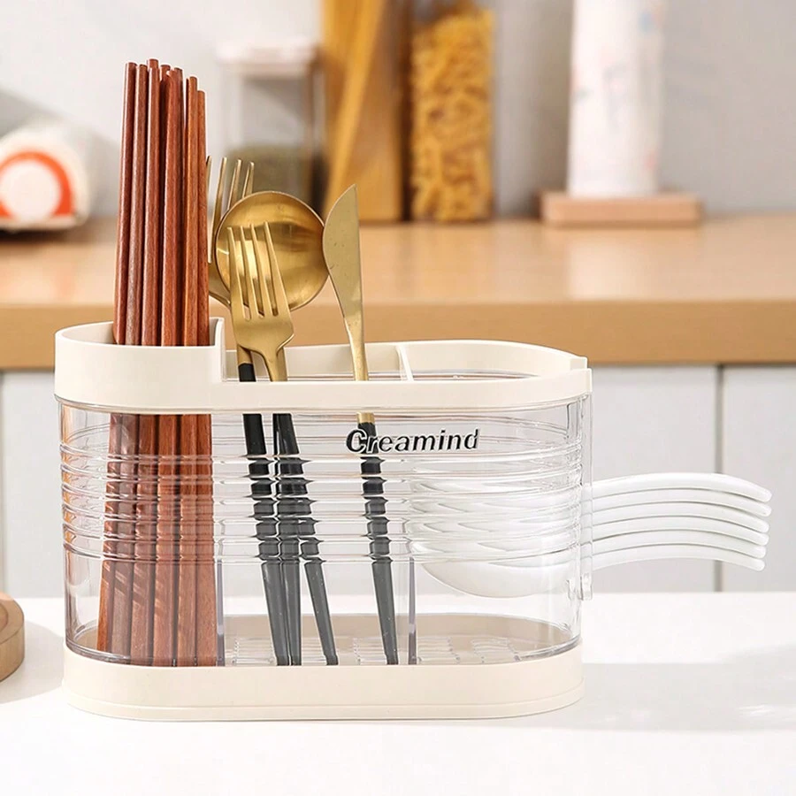 Kitchen Chopstick & Spoon Holder With Draining & Storage Function, Wall Mounted Type