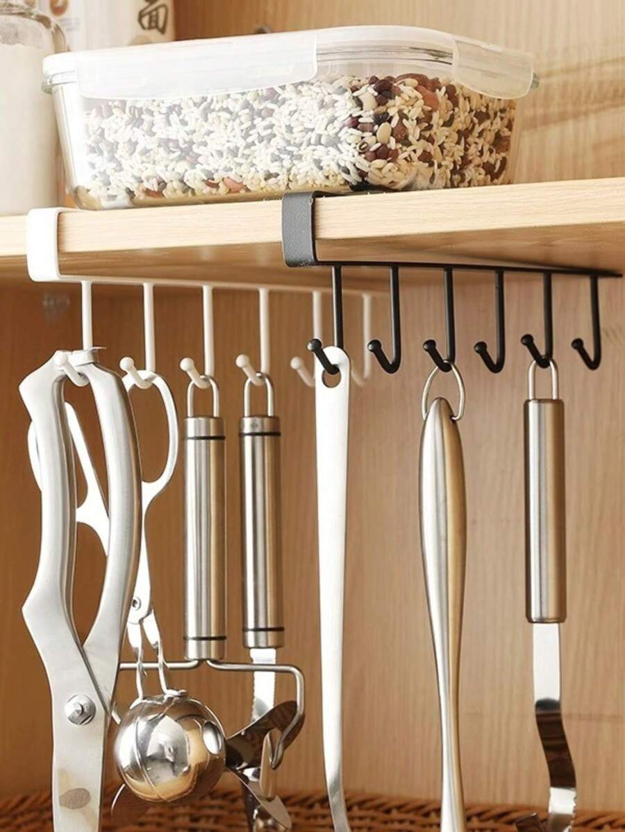 Kitchen Traceless Adhesive Hook 6 Hooks Organizer Storage Shelf For Kitchen Utensils