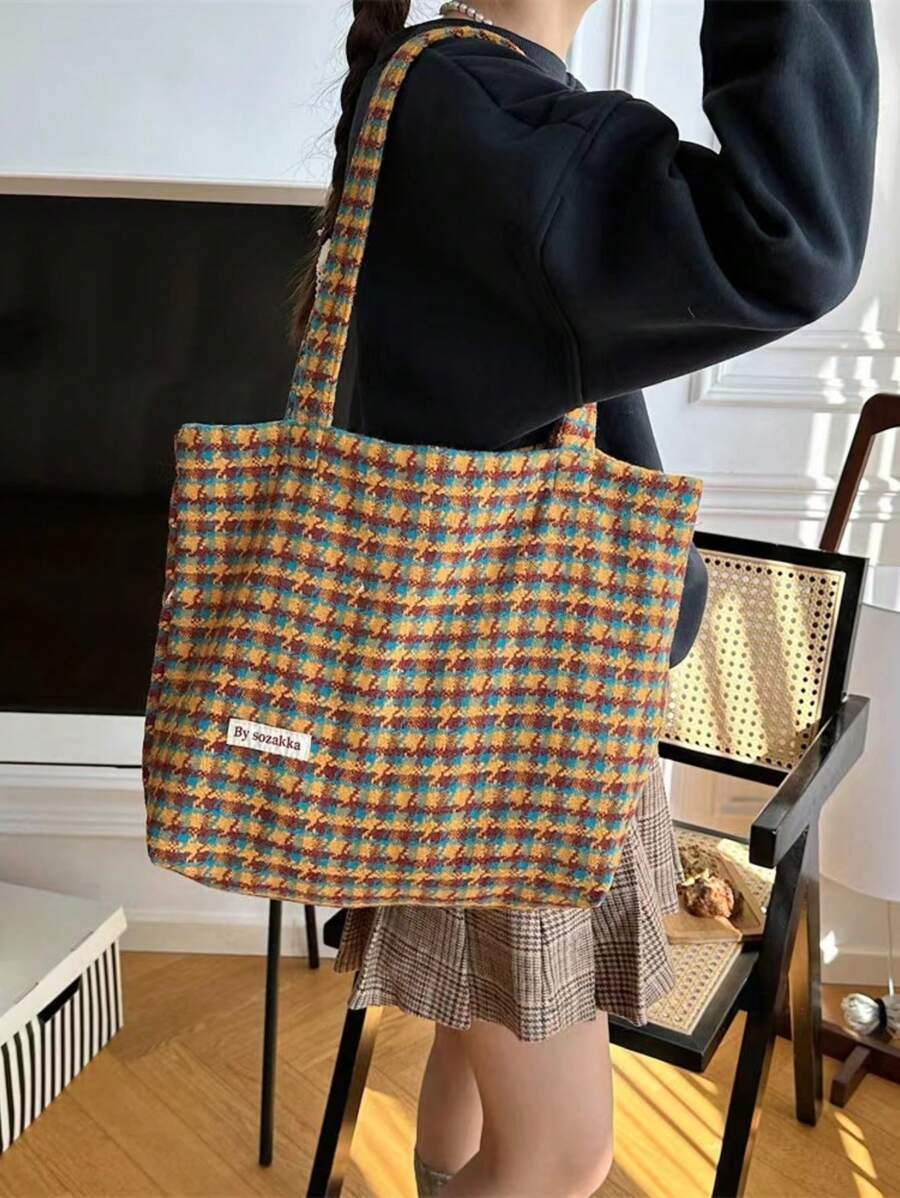 Korean Ins Style Sweet And Cute Shoulder Bag Striped Plaid Niche Fresh Large Capacity Commuting Versatile Tote Bag