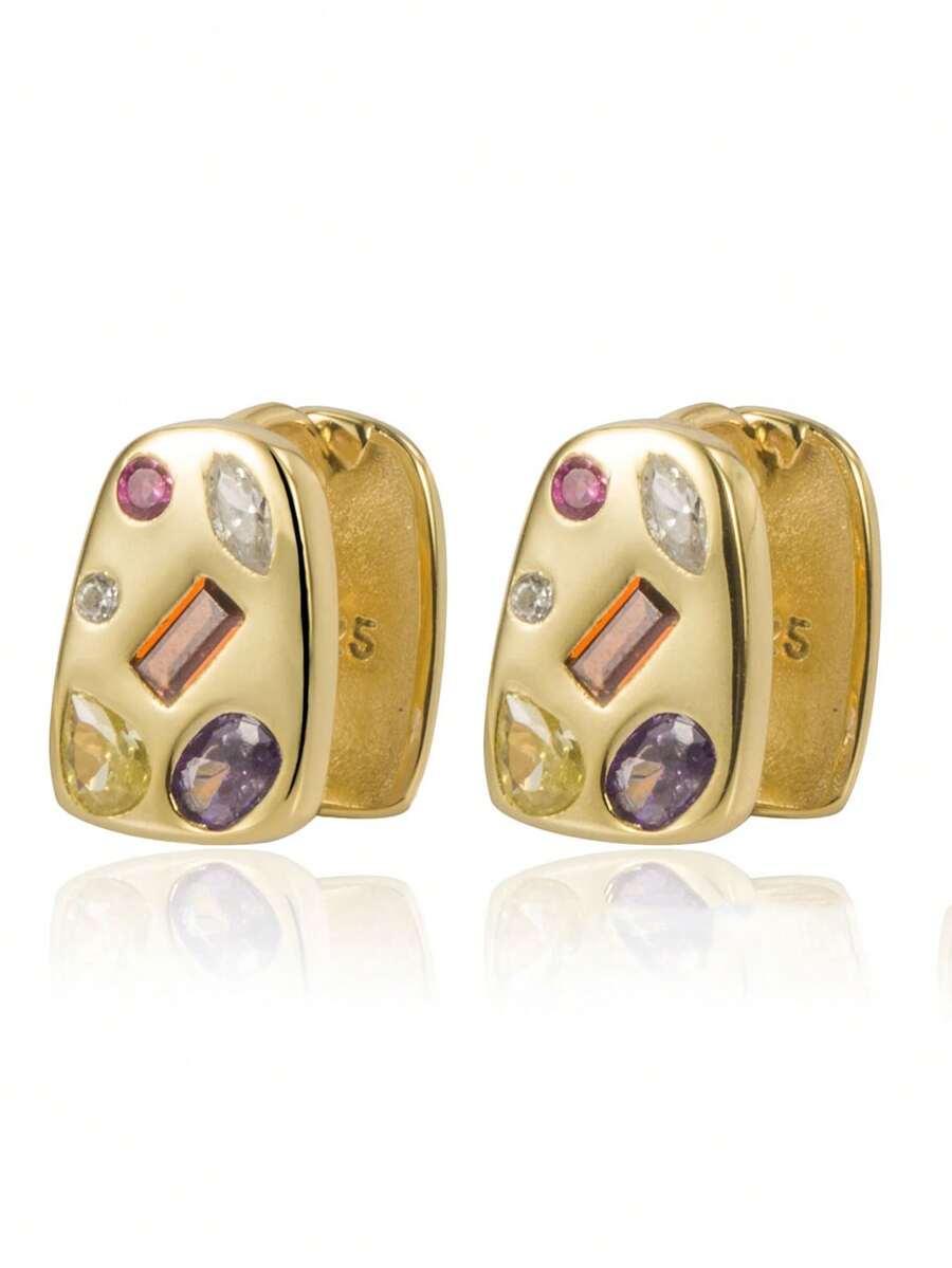 Korean Style Ins Unique Design All S925 Silver Earrings With Colorful Diamond And Zirconia Decor, Artistic And Fresh Cheese Shaped Ear Clips