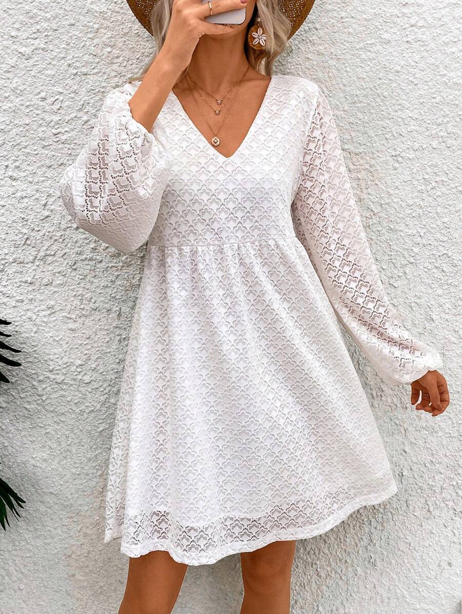 SHEIN Frenchy Lace Mesh V-Neck A-Line Dress With Lining