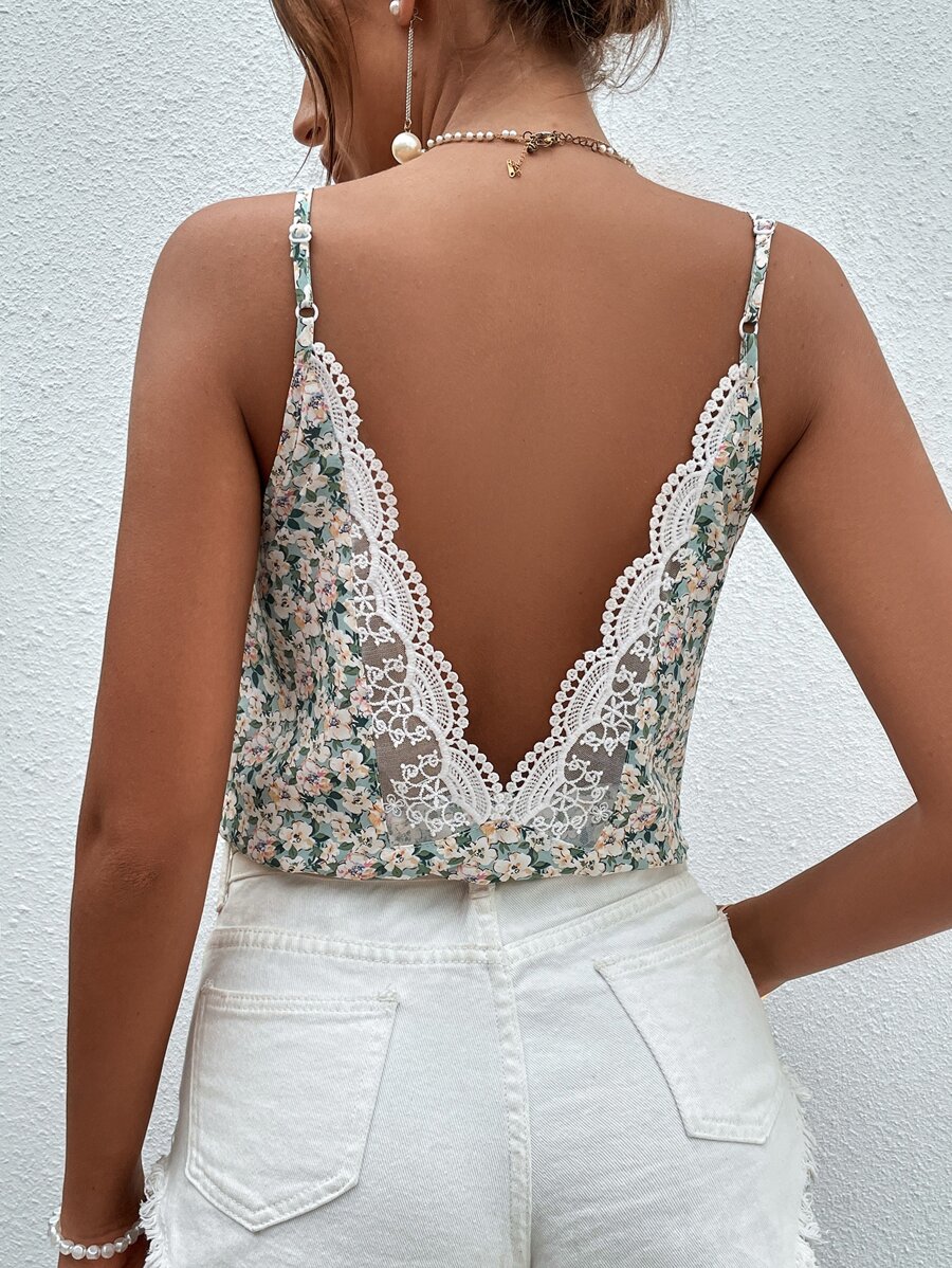 SHEIN Frenchy Lace Trim V-backless Cami Top