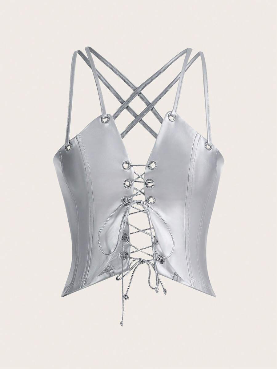 SHEINNeu Lace Up Front Cami Top