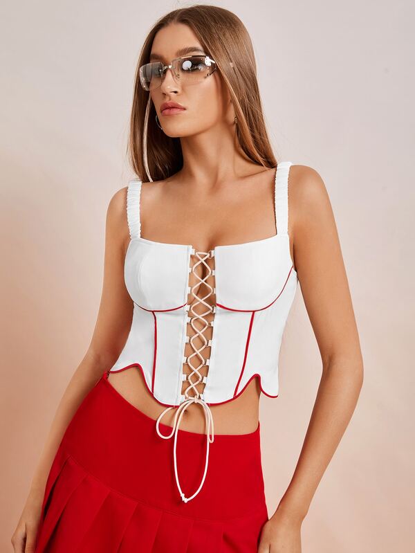 SHEIN ICON Lace Up Front Contrast Binding Cami Top