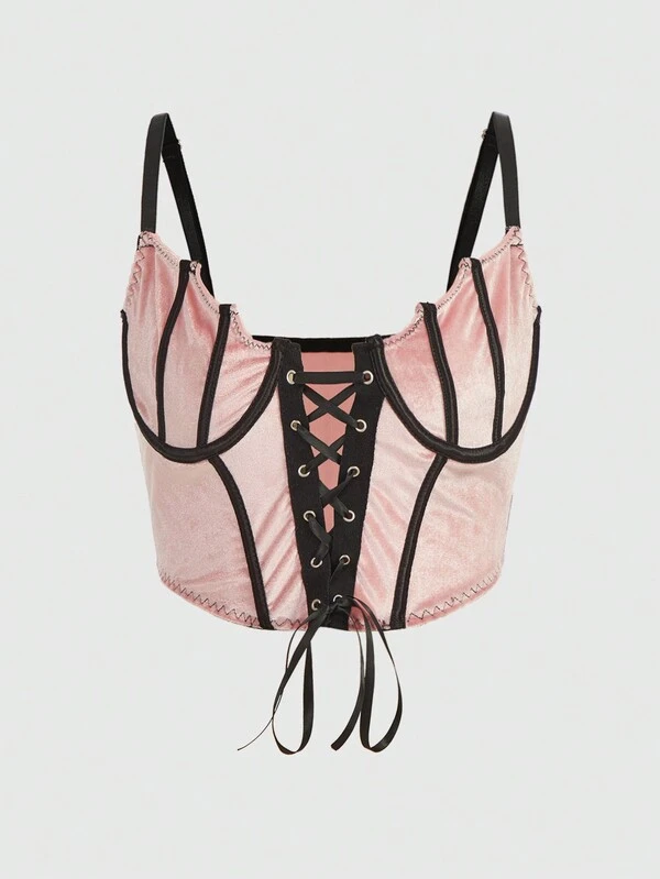 ROMWE Goth Lace Up Front Contrast Binding Cami Top