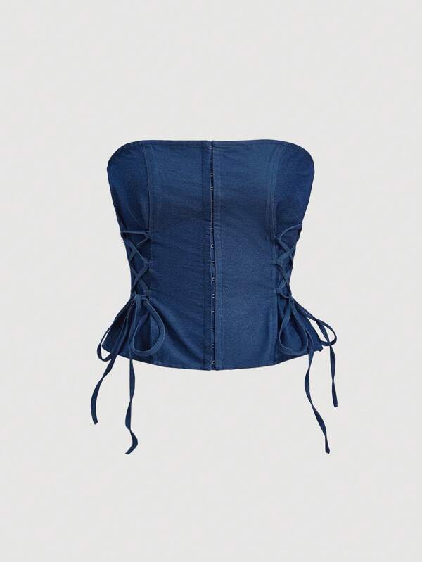 SHEIN MOD Lace Up Side Gigot Sleeve Tube Top Without Blouse