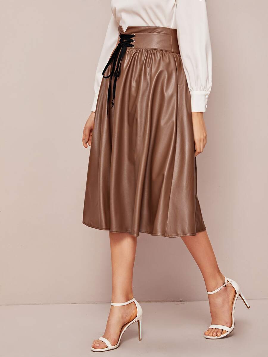 SHEIN Unity Lace-up Detail Notch Wide Waistband PU Skirt