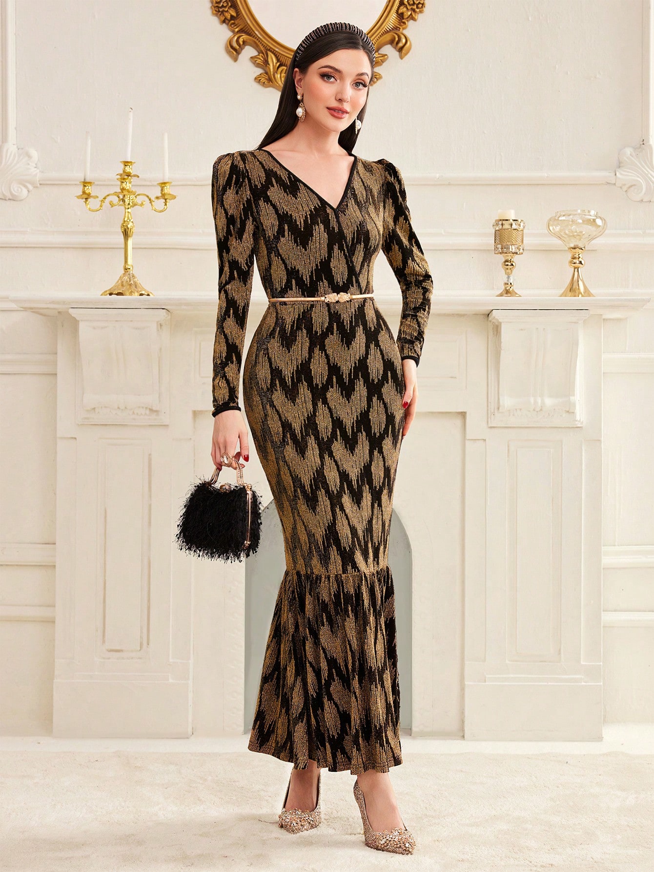 SHEIN Modely Ladies' Allover Printed Puff Sleeve Mermaid Hem Dress