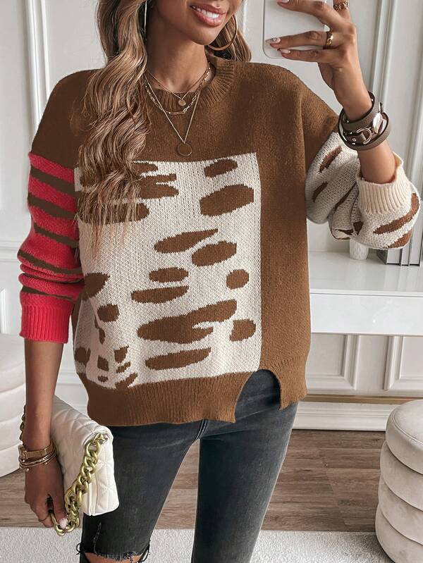 SHEIN LUNE Ladies' Color Block Split Sweater
