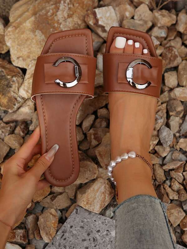 Ladies' Flat Sandals With Metallic Embellishments