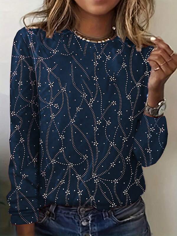 SHEIN LUNE Ladies' Flower Print Long Sleeve T-Shirt