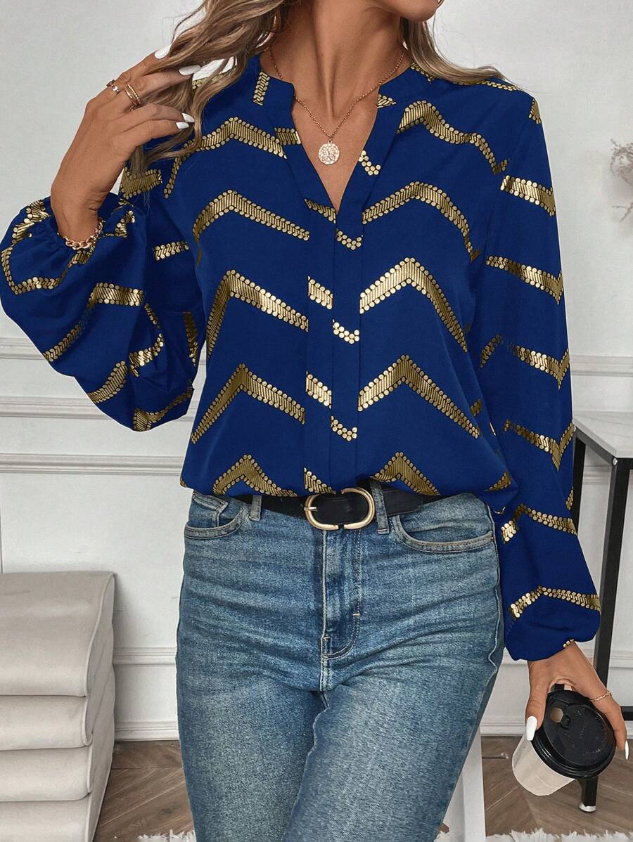 SHEIN Privé Ladies' Gold Foil Printed Long Sleeve Shirt
