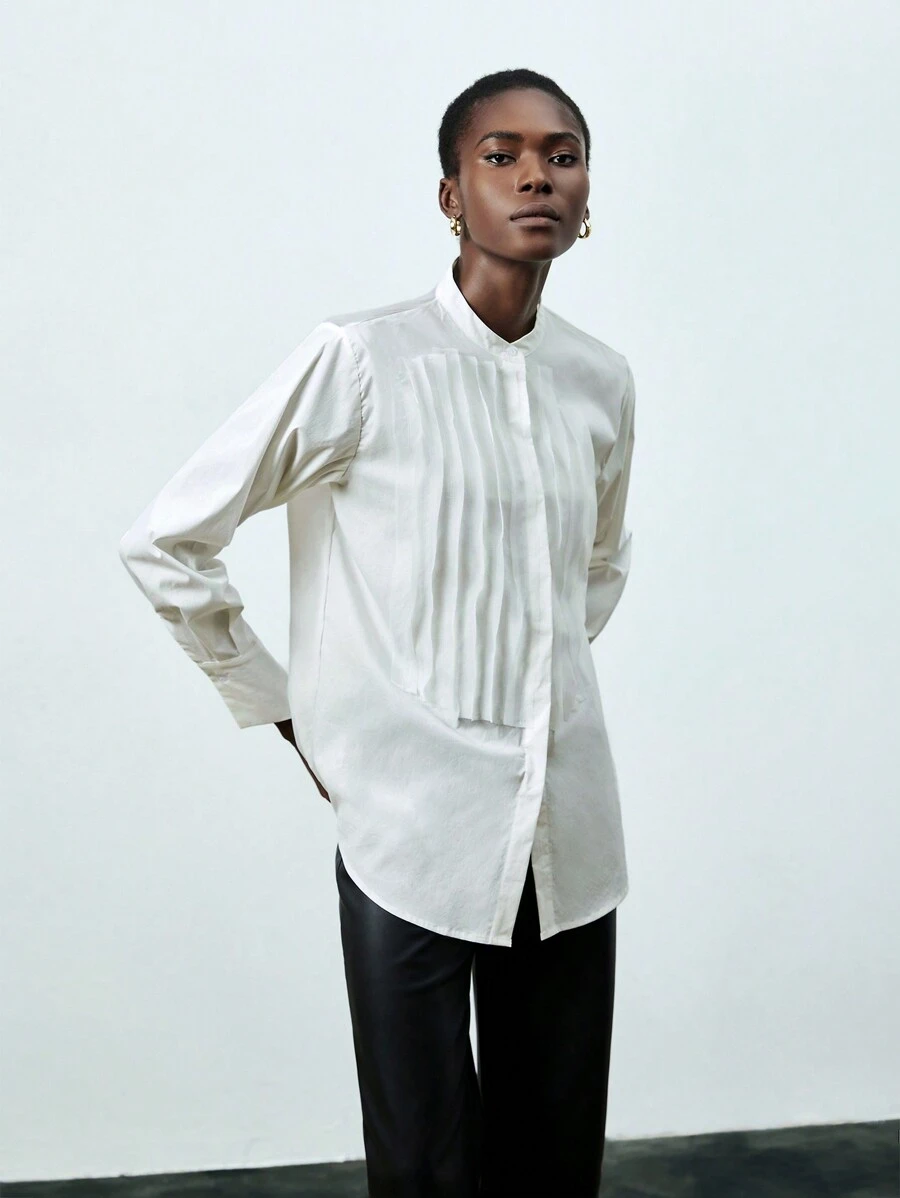 SHEIN BIZwear Ladies' Long Sleeve Shirt With Pleated Decor