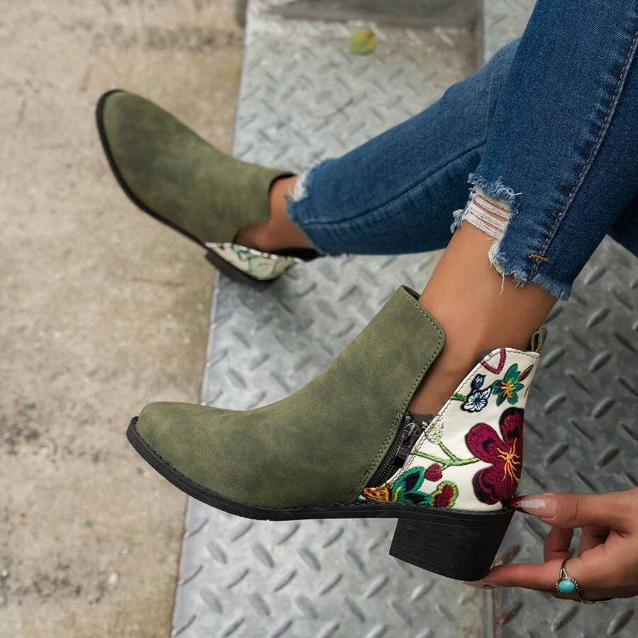Ladies' Mismatched Flower Print Boots, Random Color