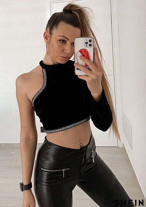 SHEIN ICON Ladies' One Shoulder Cropped Top