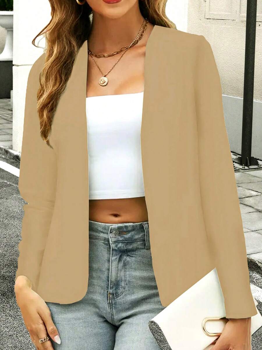 SHEIN LUNE Ladies' Plain Open-Front Suit Jacket