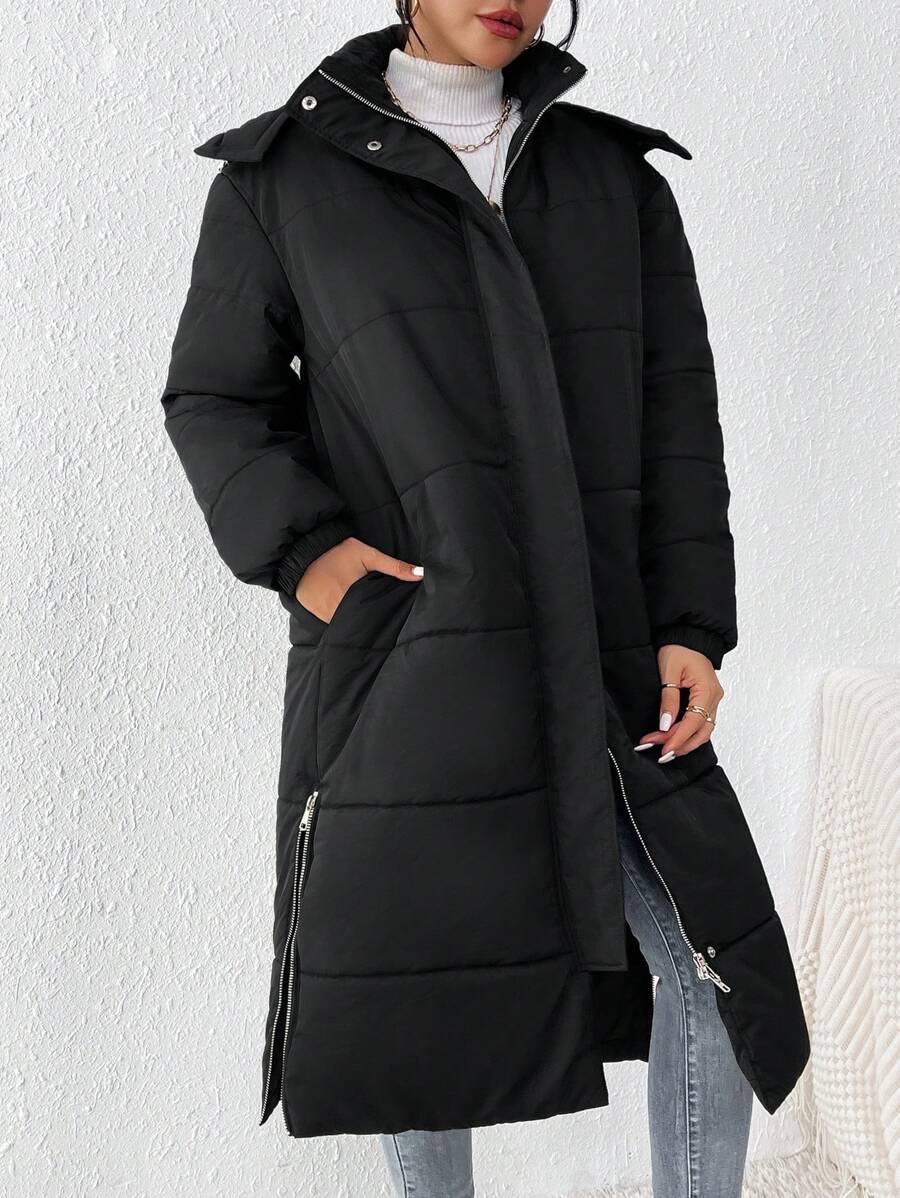 SHEIN Frenchy Ladies' Simple Solid Color Padded Coat