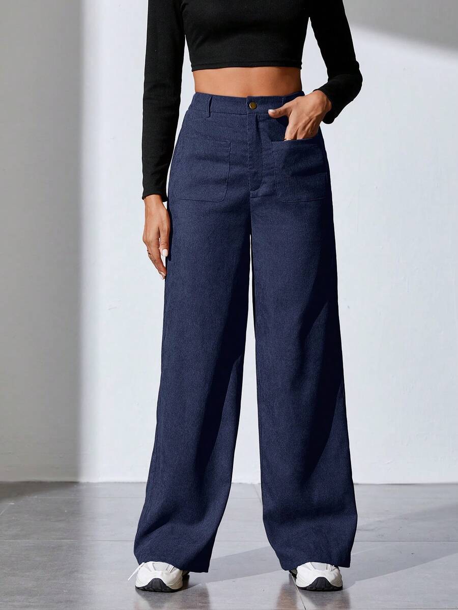 SHEIN Tall Ladies' Solid Color Straight-Leg Pants