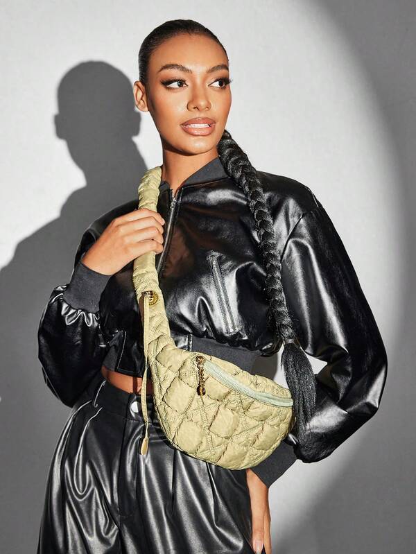 SHEIN SXY Ladies Leisure Shoulder Bag, Fold & Geometric Press Pattern & Zipper Closure & Minimalism, Multifunctional