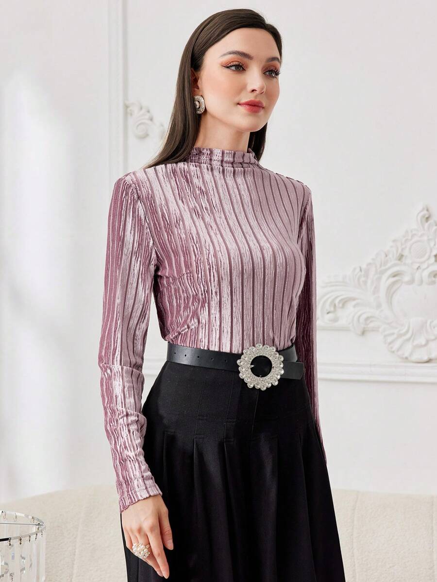 SHEIN Modely Ladies Velvet Stand Collar T-shirt