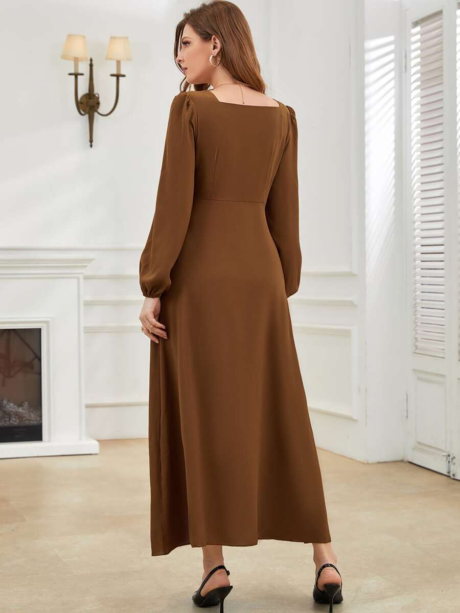 SHEIN Mulvari Lantern Sleeve Square Neck Fake Button Dress