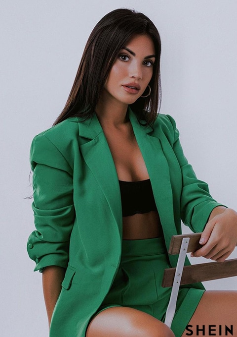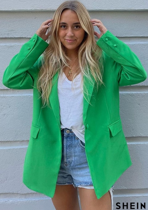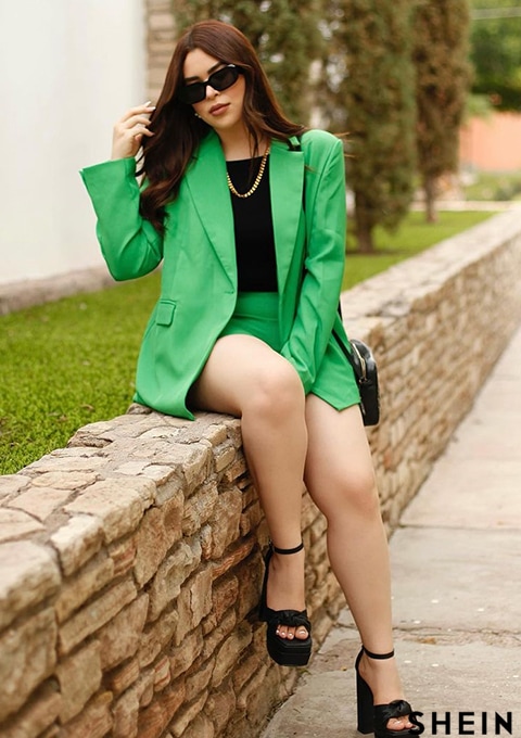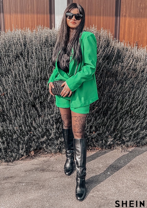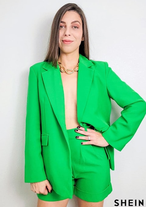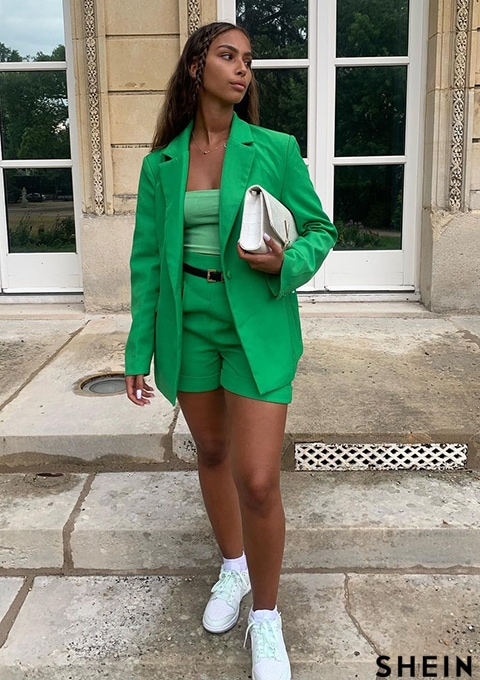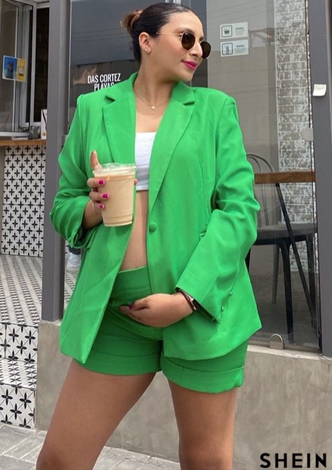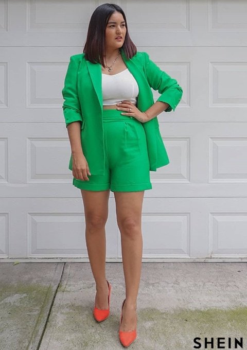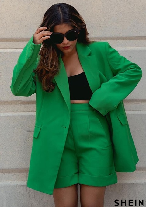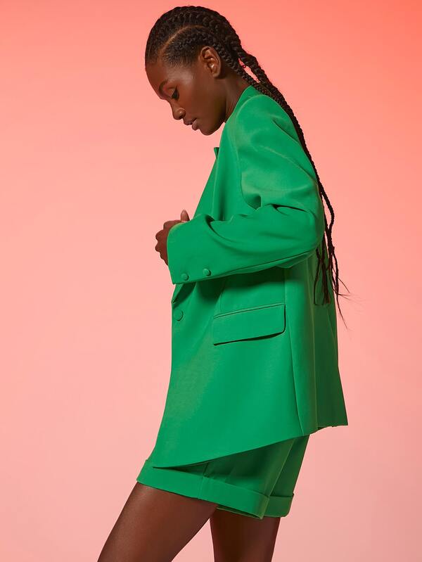 SHEIN BAE Lapel Collar Flap Detail Blazer & Cuffed Shorts Set