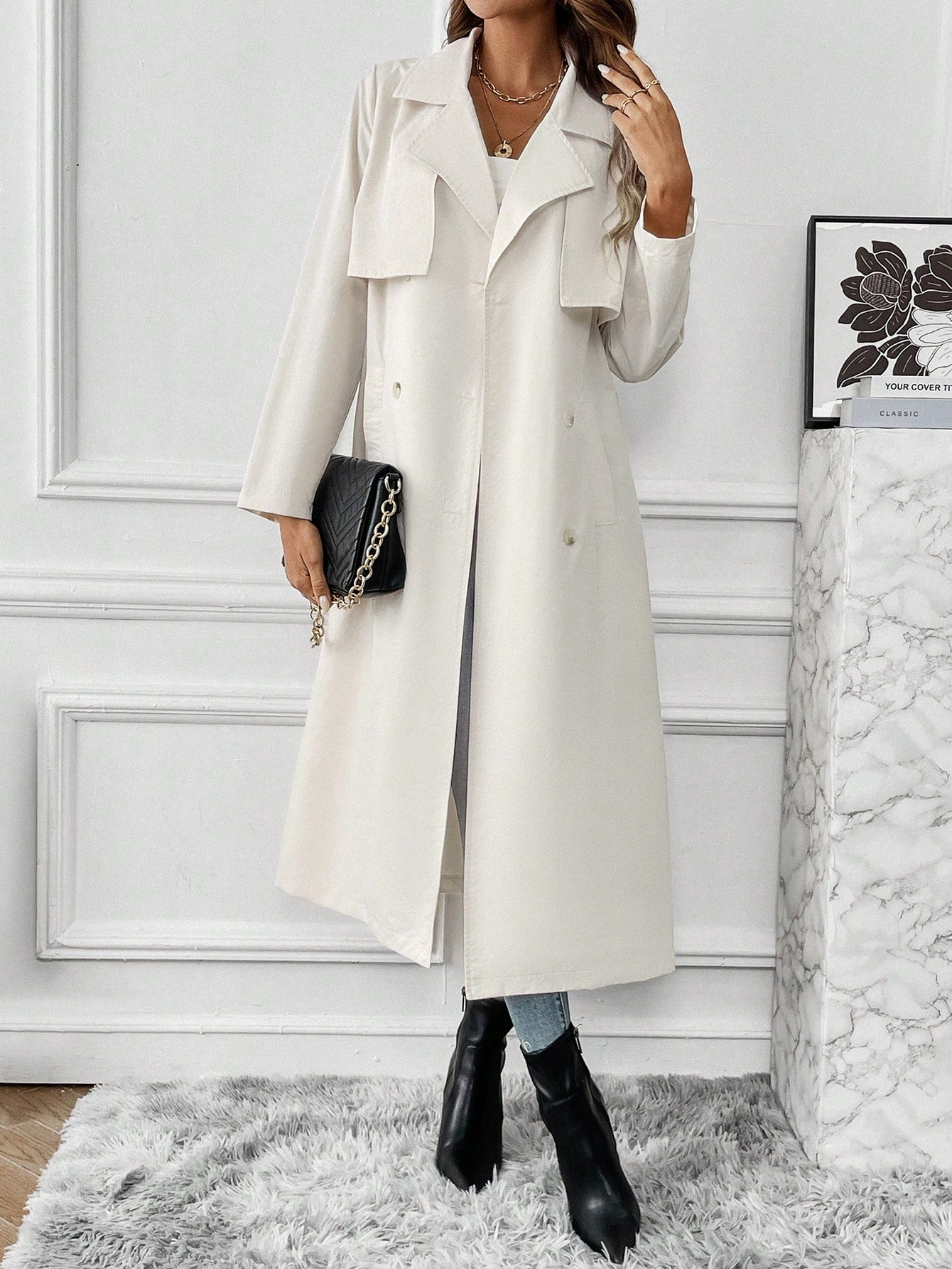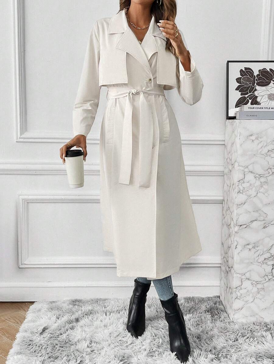 SHEIN Privé Lapel Neck Belted Trench Coat
