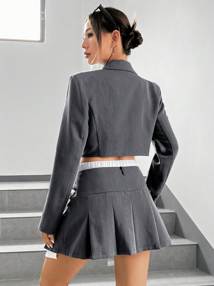 SHEIN EZwear Lapel Neck Crop Blazer & Pleated Skirt