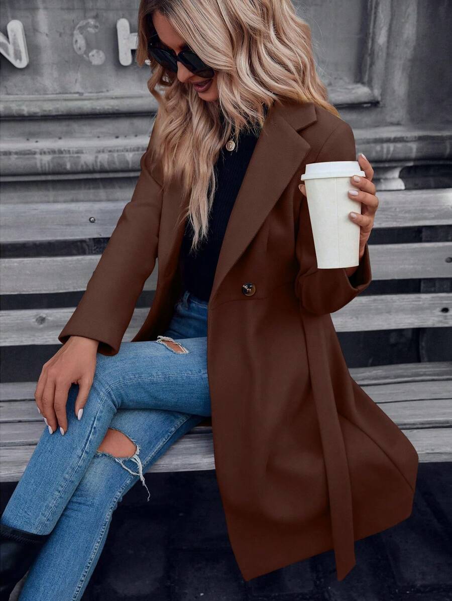 SHEIN LUNE Lapel Neck Double Button Belted Overcoat