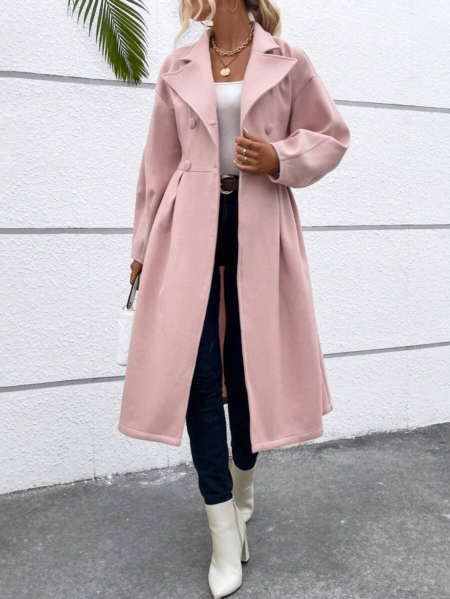 SHEIN Essnce Lapel Neck Drop Shoulder Fold Pleated Detail Overcoat