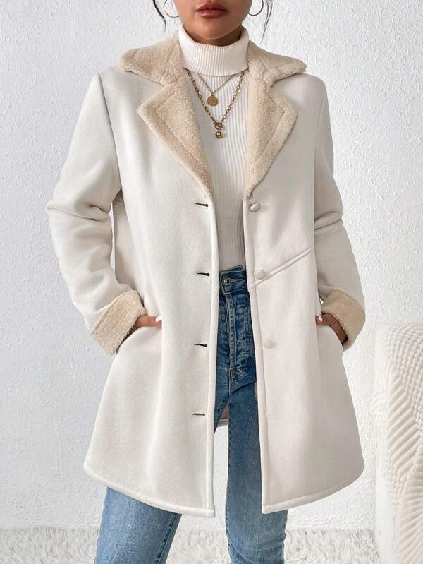SHEIN Frenchy Lapel Neck Teddy Lined Coat