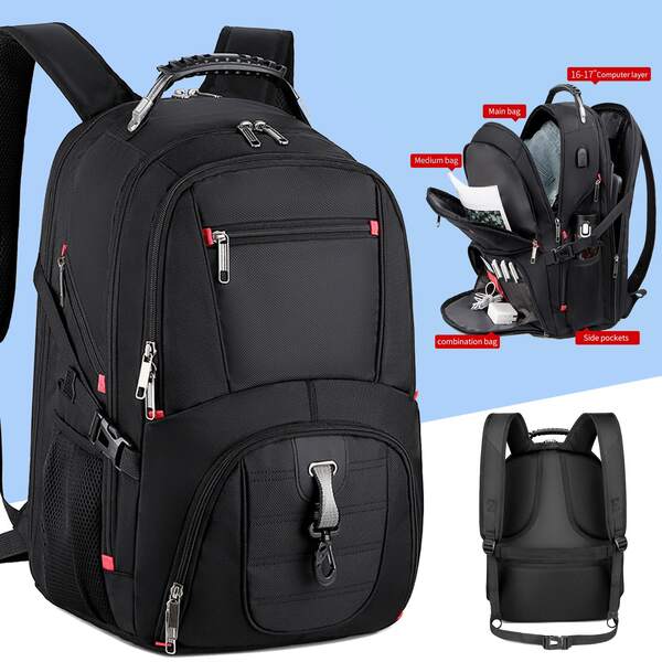 Laptop Backpack 17 Inch Waterproof Oversized TSA Travel Backpack Anti Theft College Business Men'S Backpack With USB Charging Port 17.3 Gaming Computer Backpack Women Men Black 45L Travel Backpack Laptop Backpack Black Bag Outdoor Valentines Gifts For Men