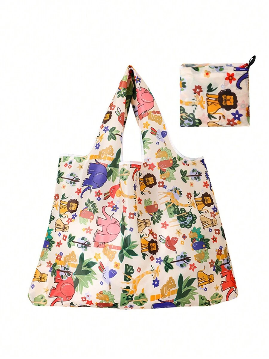 Large Capacity Foldable Shopping Bag Supermarket Portable Tote Bag With Printed 210t Storage Bag, 1pc/2pcs/6pcs Options Available