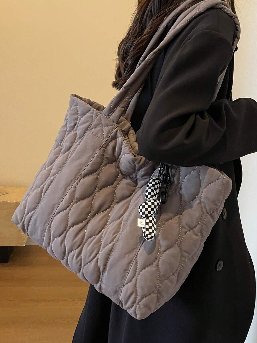 Large Capacity Shoulder Tote Bag With Strap & Pendant, Suitable For Women's Daily Use, Work, Commute, College, Studying
