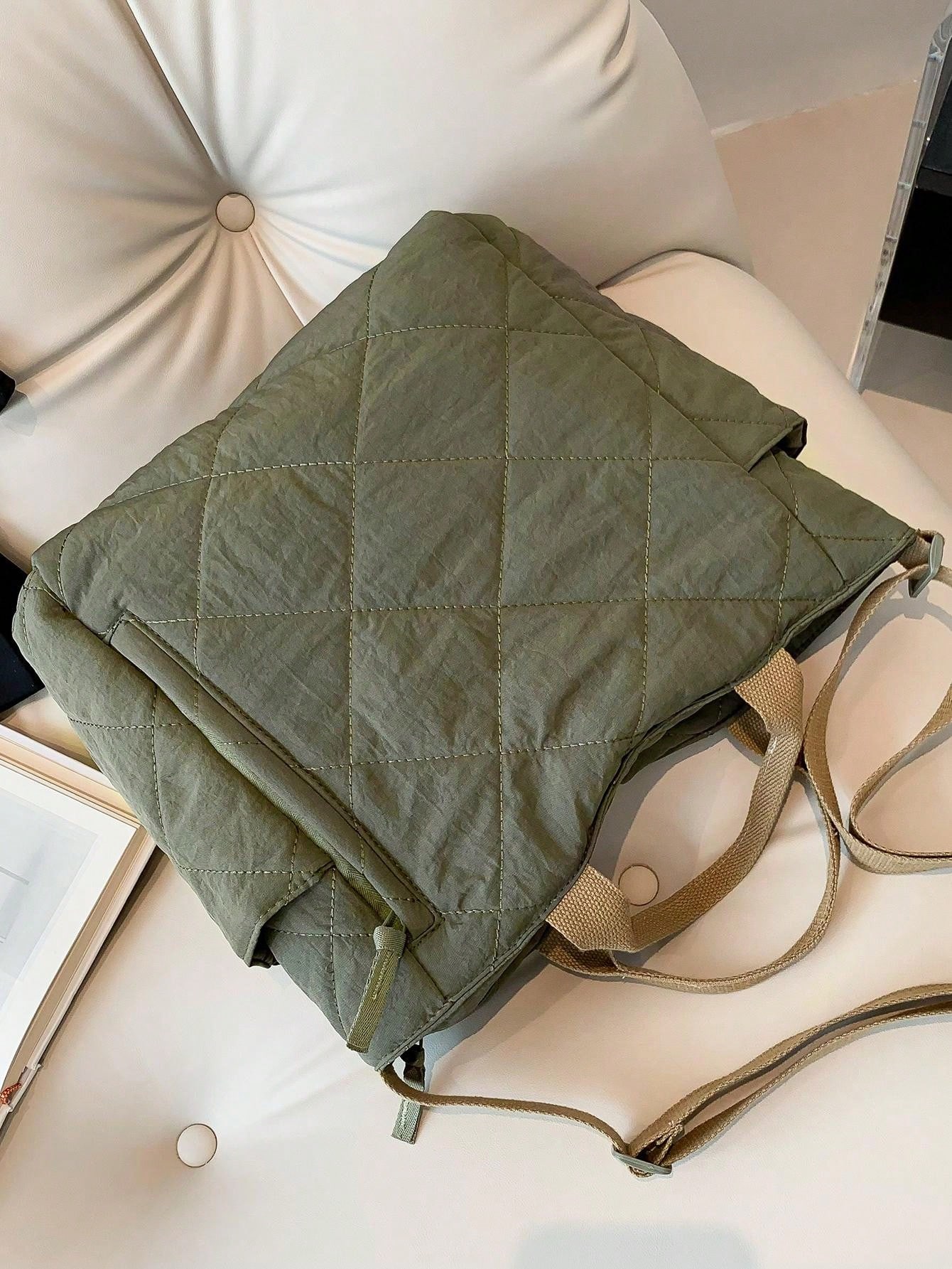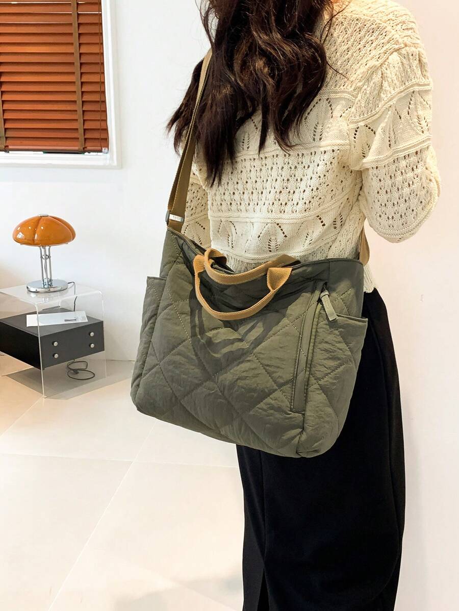 Large Capacity Solid Color Diamond Shaped Sewing And Quilting Patterned Multi Pocket Shoulder Crossbody Bag For Women