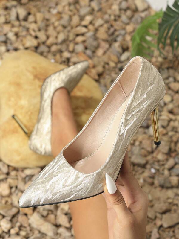 Large Size Women's High-heeled Single Shoes Golden Spring And Autumn Pointed Stiletto Heels Single Shoes For Banquet And Party