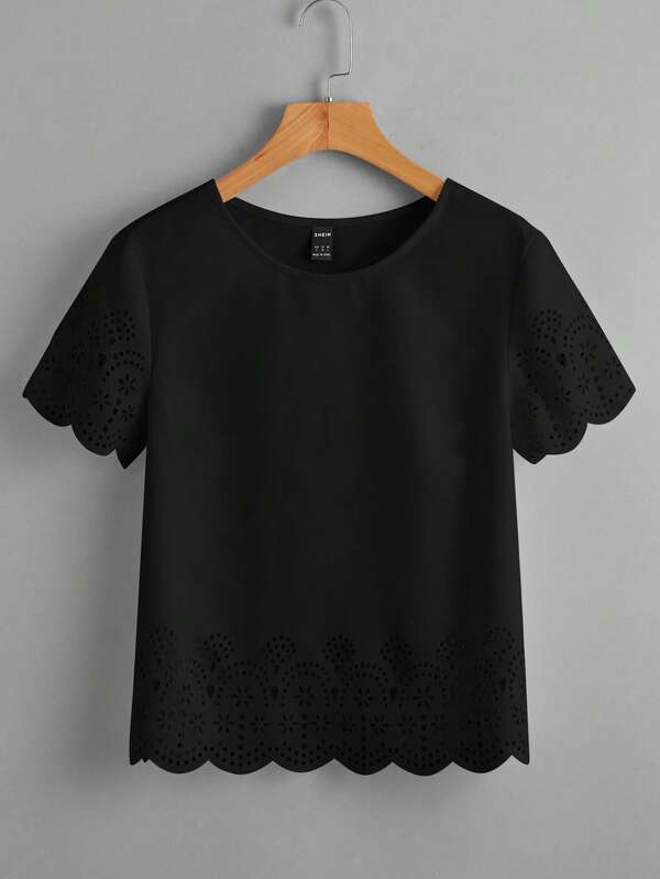 SHEIN Clasi Laser Cut Scallop Trim Blouse