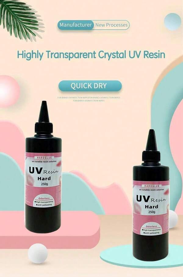 Latest Clear Hard UV Resin 250g Fastest Curing, Zero Yellowing Superb Transparency, Ultraviolet Solar Curing Resin Glue For Molds Jewelry Making Pendants Earrings Bracelets Crafts DIY