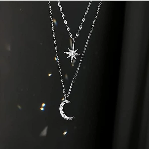 Layered Necklace Chain for Women Girls - Stars and Moon Choker Necklaces Crescent Pendant Necklace Jewelry