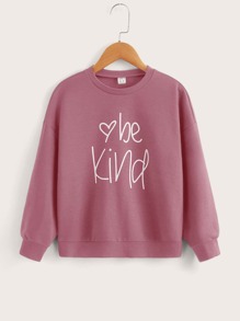 SHEIN Kids EVRYDAY Tween Girl Leisure Long Sleeve Heart And Slogan Pattern Sweatshirt
