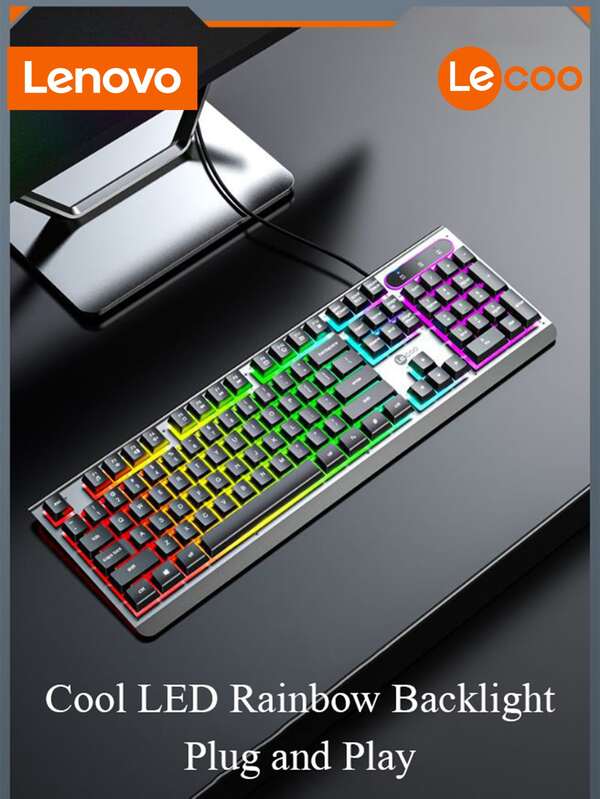 Lenovo Gaming Keyboard, 104 Keys All-Metal Panel, Rainbow LED Backlit Quiet Computer Keyboard, Wrist Rest, Multimedia Keys, Anti-ghosting Keys, Light Up USB Wired Keyboard compatible with PC Mac Xbox