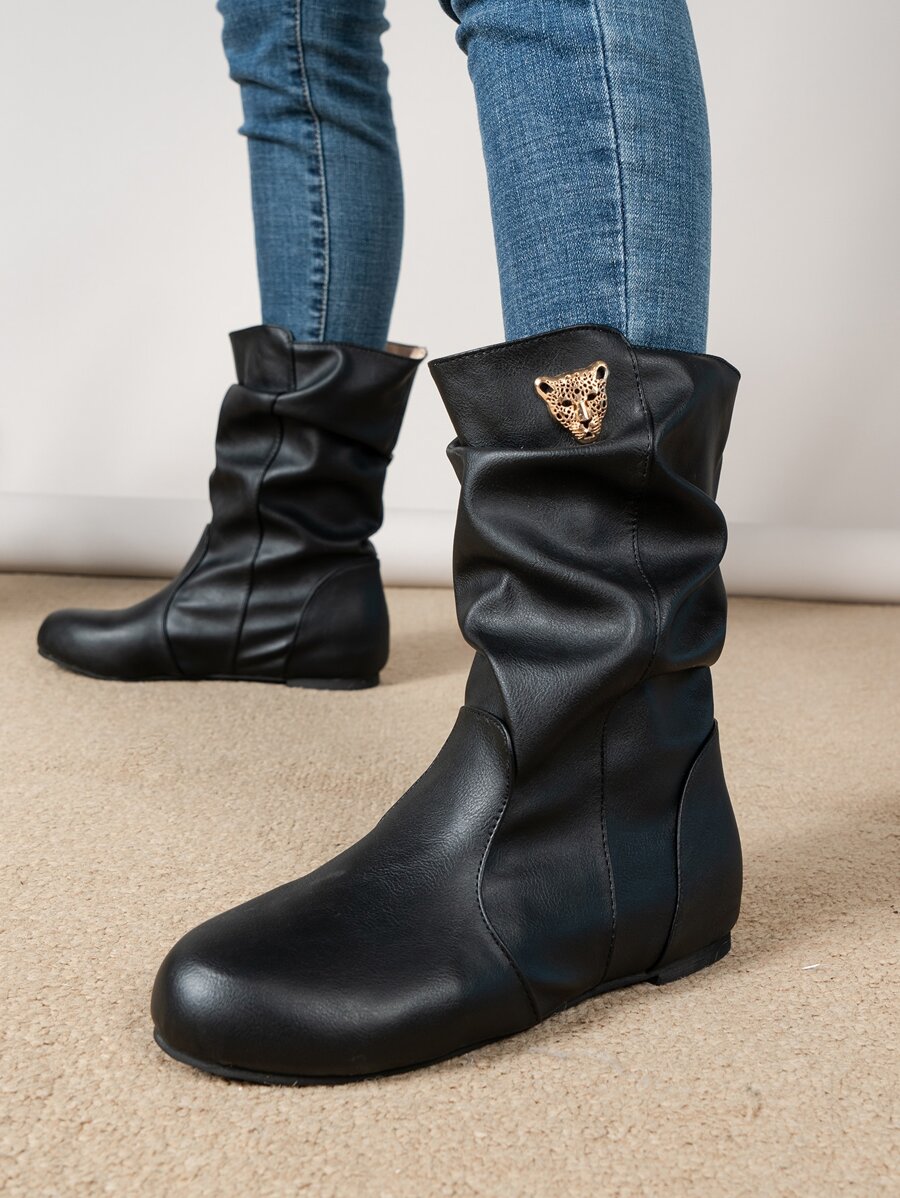 Leopard Head Decor Slip-On Slouchy Boots