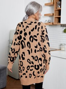 SHEIN LUNE Leopard Print Drop Shoulder Cardigan