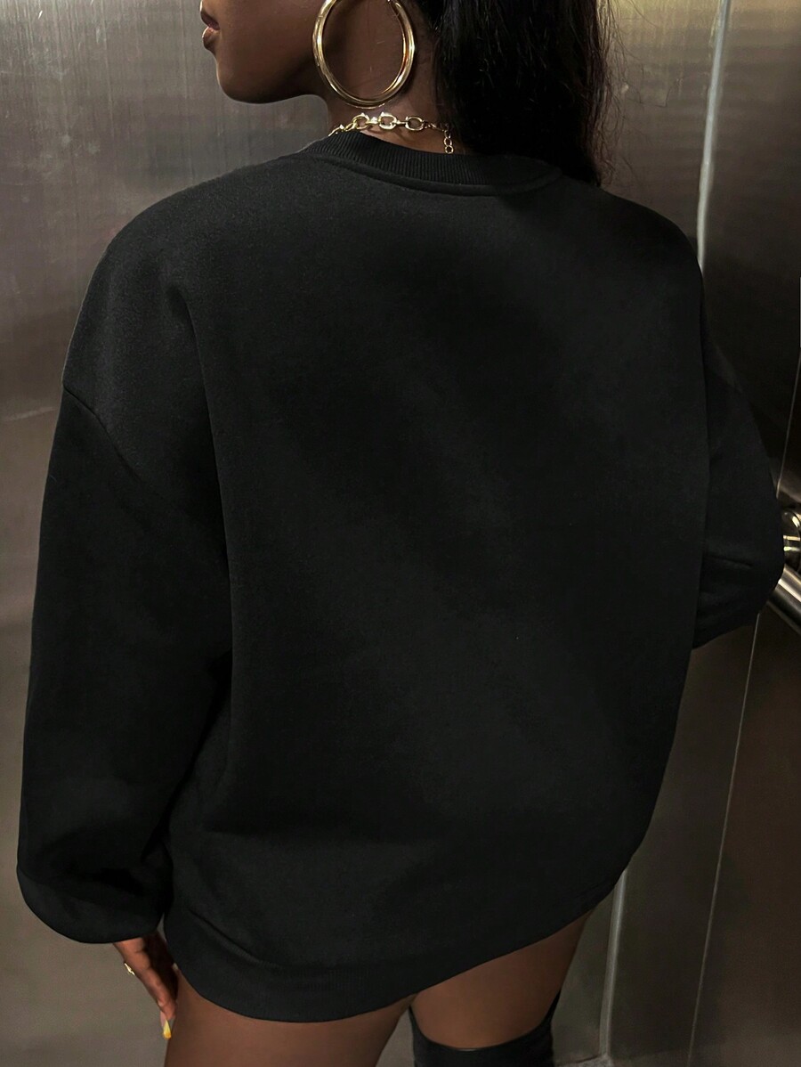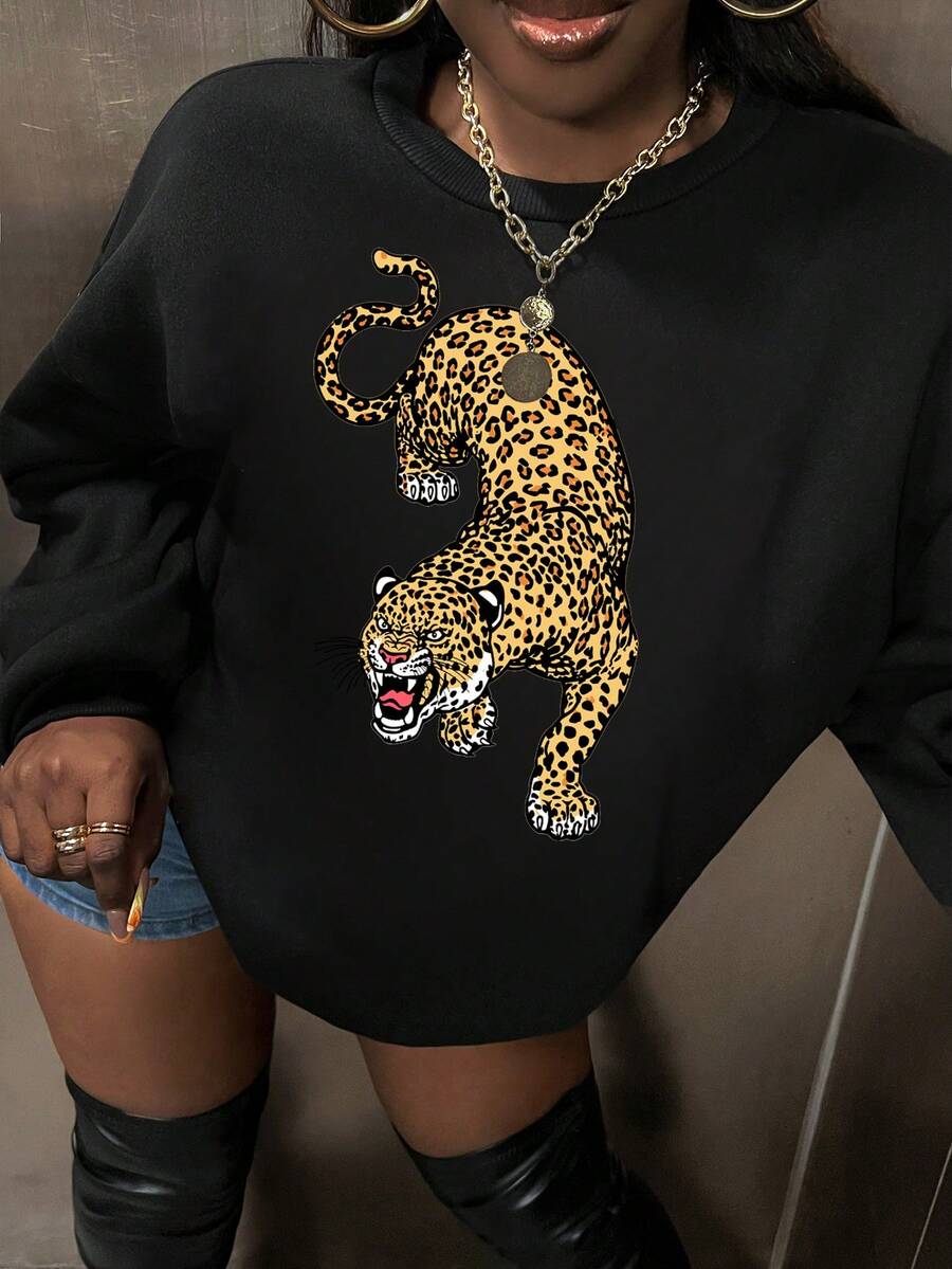 SHEIN Slayr Women's Leopard Print Round Neck Loose Fit Sweatshirt With Dropped Shoulders
