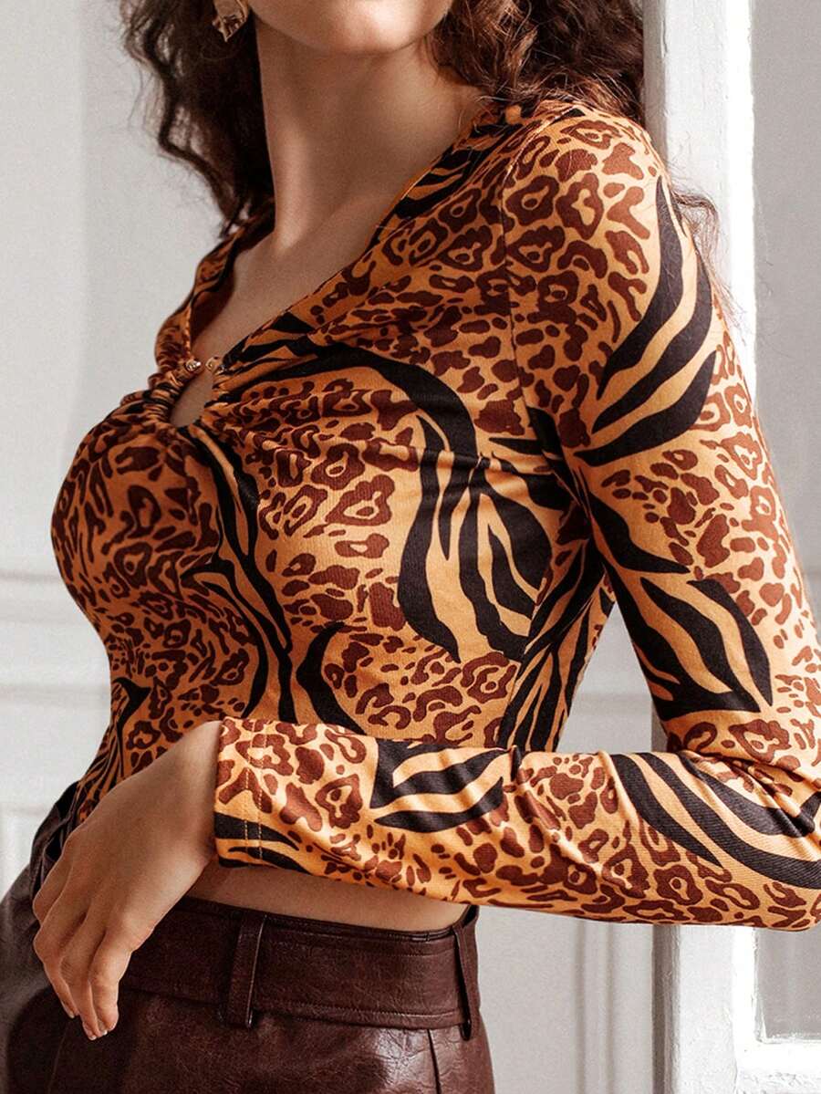 SHEIN Frenchy Leopard Print Ring Long Sleeve T-shirt